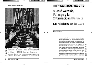 Hasta los años 70 era frecuente que los falangistas (y no solamente los de “izquierdas”) negaran las relaciones entre la llamada impropiamente “internacional fascista” y su partido en el período fundacional. La prueba de más peso que alegaban era la publicación de una nota en la que se negaba que José Antonio hubiera estado presente en “el Congreso de Montreux”. Esta versión pudo sostenerse en medios falangistas, a pesar de que desde los años 60, los historiadores ya habían examinado en profundidad los archivos del Ministerio de Cultura Popular y del Ministerio de Exteriores italiano y se conocía fuera de España que tales relaciones existieron. El déficit de estudios históricos sobre la Falange que existía en aquel momento, hizo que partidos como FE–JONS(A) pudieran seguir basando su actuación en datos históricos inexactos (y en ocasiones, cuando no convenían a la orientación de estos grupos, incluso deliberadamente ignorados). Va siendo horade restablecer la realidad sobre estos contactos para poder disponer de una perspectiva global sobre tales relaciones y, de paso, disipar los últimos rescoldos de resistencia a reconocer los hechos. Las relaciones entre José Antonio Primo de Rivera y los CAUR y, por extensión, con la Italia fascista, fueron estrechas. Así lo demuestran los testimonios y documentos históricos incontrovertibles.